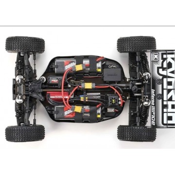El estatus mundial de la categoría de buggies a escala 1/8 se ha construido sobre una combinación de alta velocidad y diversión dinámica. En los últimos años, los buggies EP (eléctricos) impulsados por baterías y motores eléctricos han ganado popularidad. Basándose en su célebre buggy de la serie GP Inferno 1/8, Kyosho lanza el Inferno MP10e Readyset eléctrico. El nuevo MP10e presenta importantes actualizaciones, pero hereda el equilibrio de peso óptimo del Inferno MP9e Evo. V2 gracias a su distribución de baterías izquierda-derecha, ampliamente adoptada en los diseños de buggies EP 1/8. Esta disposición también facilita el mantenimiento. Las características de salida del motor KV2300 se pueden programar en el ESC (controlador electrónico de velocidad) BRAINZ 8. Con el sistema R/C preinstalado, puedes empezar a conducir después de desempaquetar el modelo y cargar la batería. Equipado con el nuevo servo de dirección KS5071-09MW de alto torque e impermeable, el MP10e puede soportar las cargas pesadas de la conducción todoterreno extrema. La piedra angular del alto rendimiento y la fiabilidad del MP10e es el sistema de suspensión, que es similar al del modelo Inferno MP10 GP. No solo puedes superar a los modelos GP con el Inferno MP10e; esta máquina eléctrica de alta potencia viene empaquetada como un Readyset con la potencia de carrera para triunfar al más alto nivel.