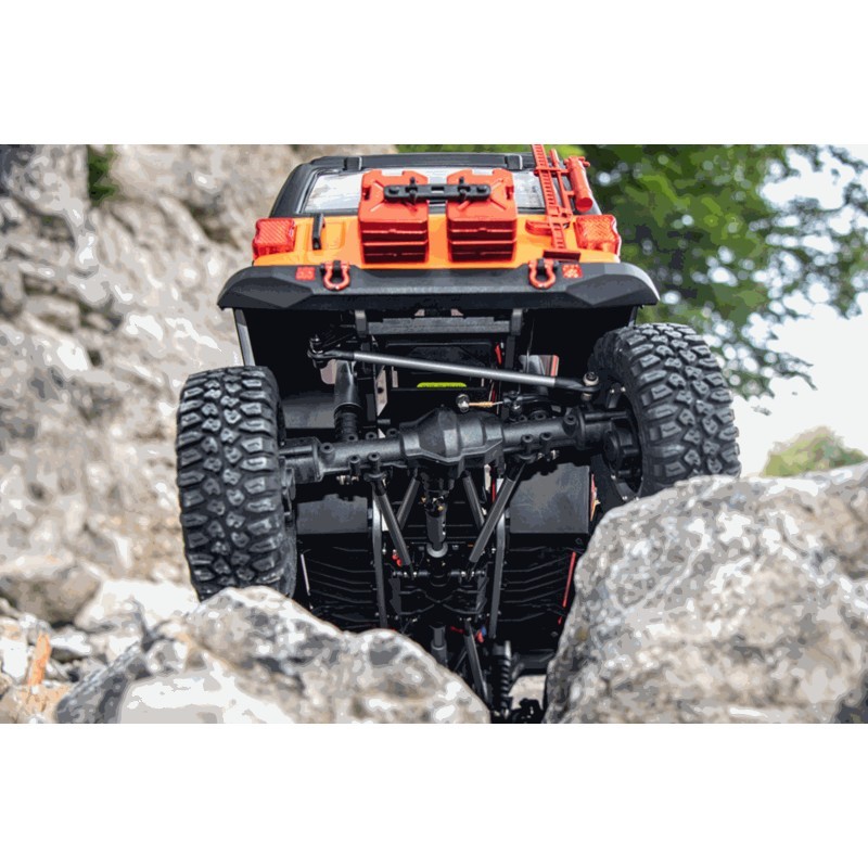 ‎Bloquee y desbloquee el diferencial delantero y trasero de forma independiente para obtener el máximo rendimiento ‎‎en la pista, todo controlado de forma remota desde el transmisor y dos servos de 2x 0,9 kg.‎‎ ‎‎Deje el diferencial desbloqueado para un movimiento suave a alta velocidad.‎‎ ‎‎En pistas técnicas, puede bloquear el diferencial delantero, el diferencial trasero o incluso ambos para manejar terrenos extremos.‎
