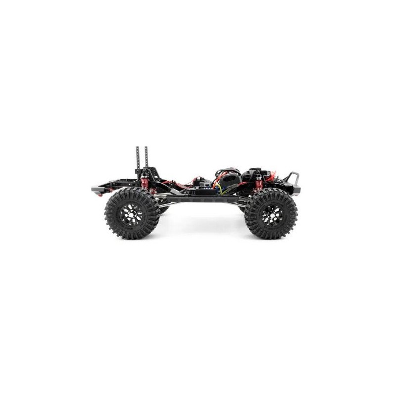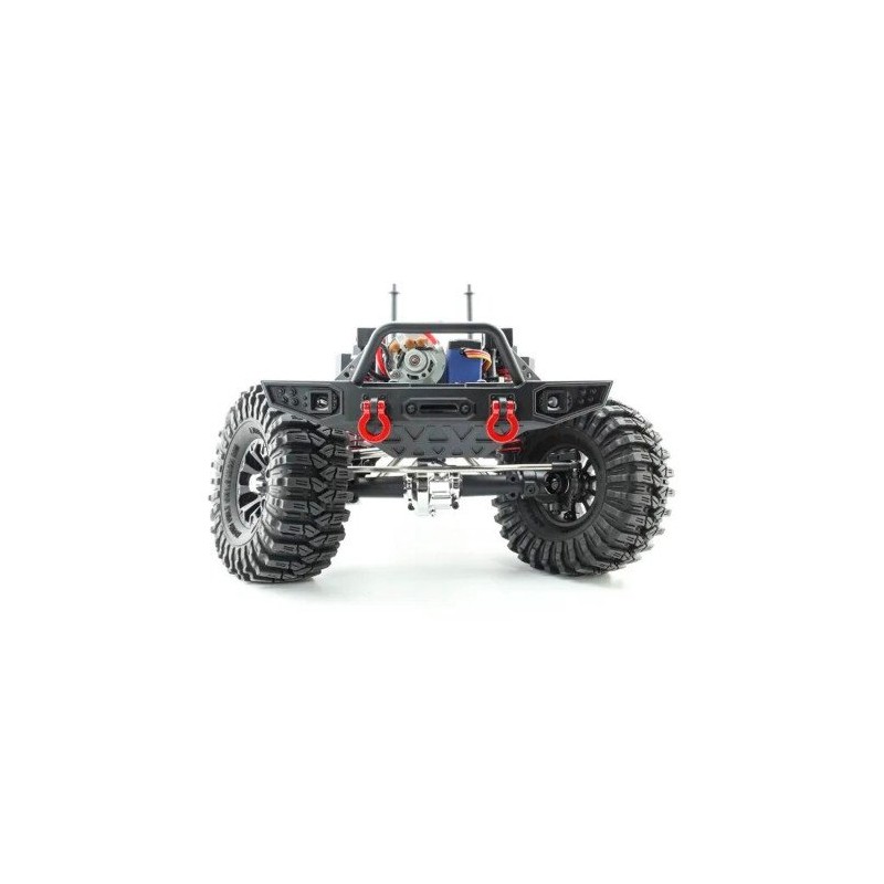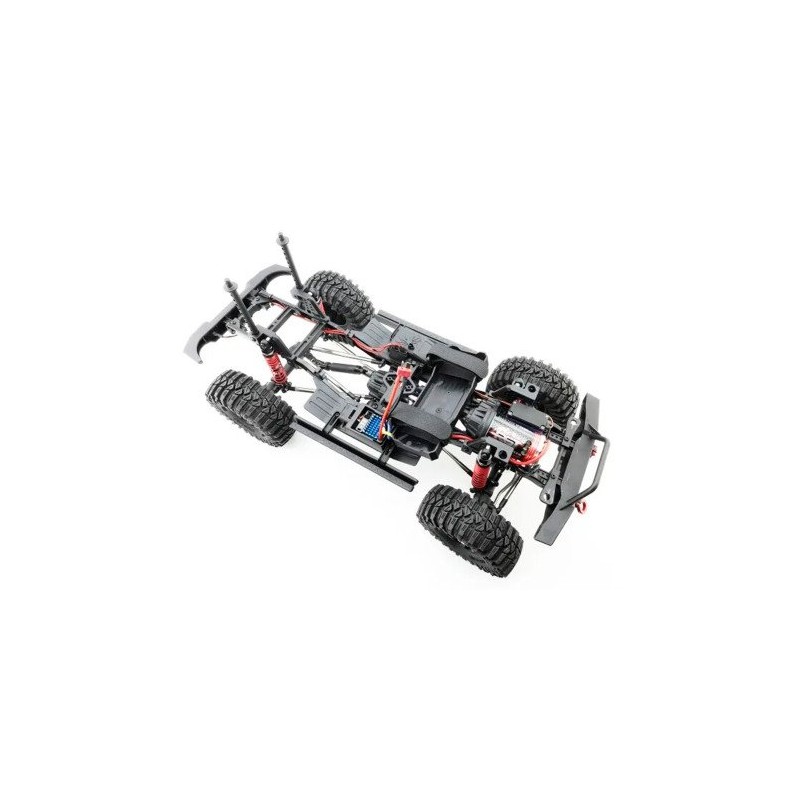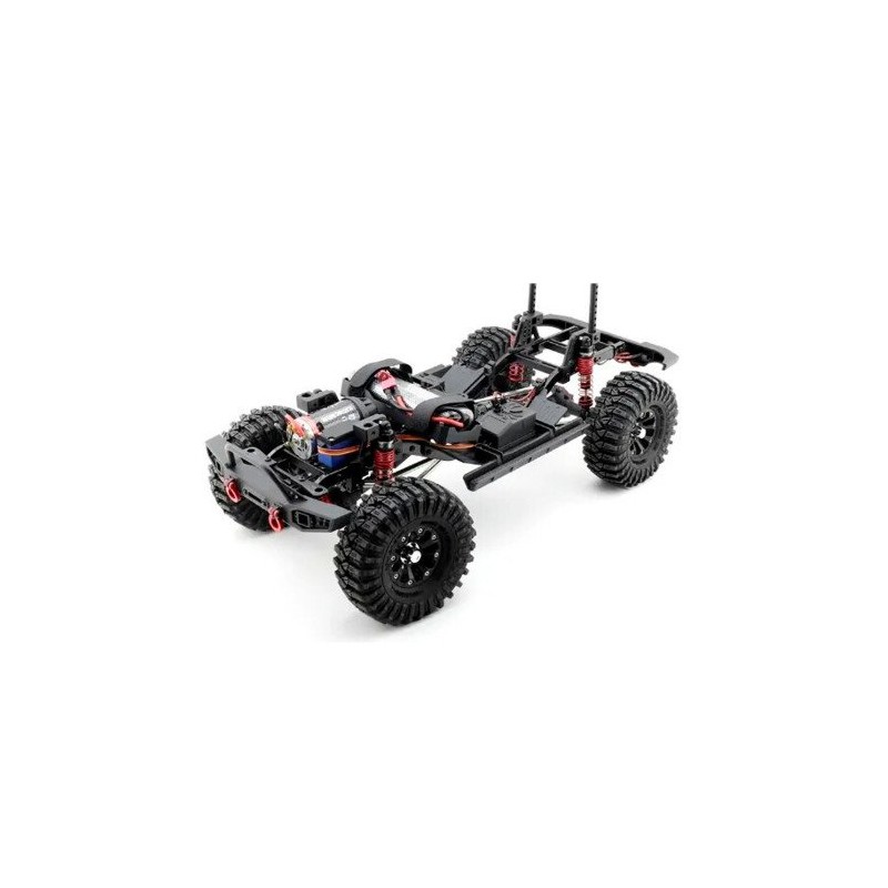 Está configurado con potentes piezas eléctricas, como el motor RC550 17T de súper par, el Hobby Wing WP-1060 impermeable especialmente para orugas que admite el modo LiPO, servo impermeable de 15 kg con engranaje totalmente metálico, batería NiMH de 7.2V 2000mAh y radio especial de 4 canales con función de control de juegos de luces.