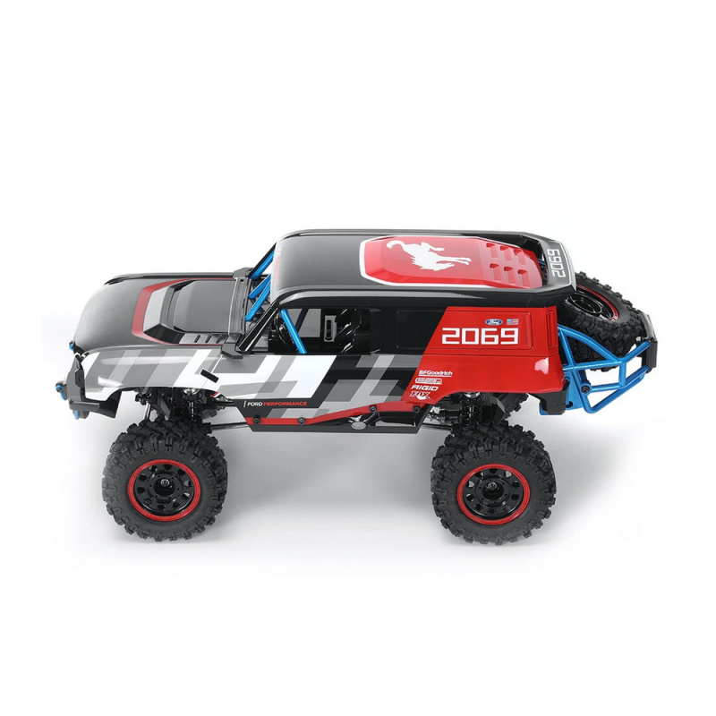 MJX H12P Ford Bronco R 4WD Crawler a escala 1/12 con licencia oficial ofrece un diseño espectacular, una fiabilidad excepcional y una potente experiencia de crawling. Está repleto de increíbles características, y el motor brushless incluido proporciona la potencia suficiente para trepar y enfrentarse prácticamente a cualquier terreno montañoso.