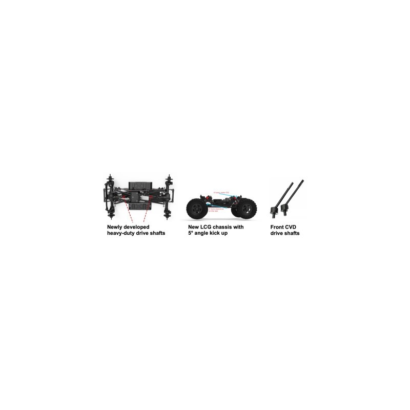 The heart of this model is a 2-speed transmission and the new LCG Concept Chassis, which is equipped with revised shock absorber geometry for maximum performance. The newly developed, adjustable Big Bore oil pressure shock absorbers ensure optimum suspension and control on any terrain. Thanks to the SOA (Servo-On-Axle) setup, the GOAT offers improved steering response that takes full advantage of the new super-grippy oversize tires.