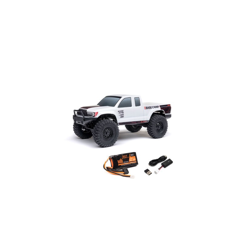 Una de las microplataformas más exitosas de todos los tiempos, el Axial SCX24 es también uno de los mejores valores en el hobby del RC crawling. Dentro de la caja, junto con la plataforma montada y acabada, encontrará una emisora Spektrum SLT2 de 2,4 GHz, una batería LiPo de 350 mAh y un práctico cargador USB. Incluso las pilas AA del transmisor están incluidas. Para grandes aventuras en micro RC de rastreo - a un precio pequeño - ¡venga al SCX24 Base Camp!