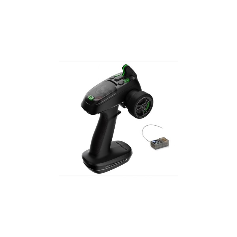 Mando a distancia de 2,4 GHz de alta calidad que incluye un receptor integrado de 6 canales. La radio es compatible con LiPo.